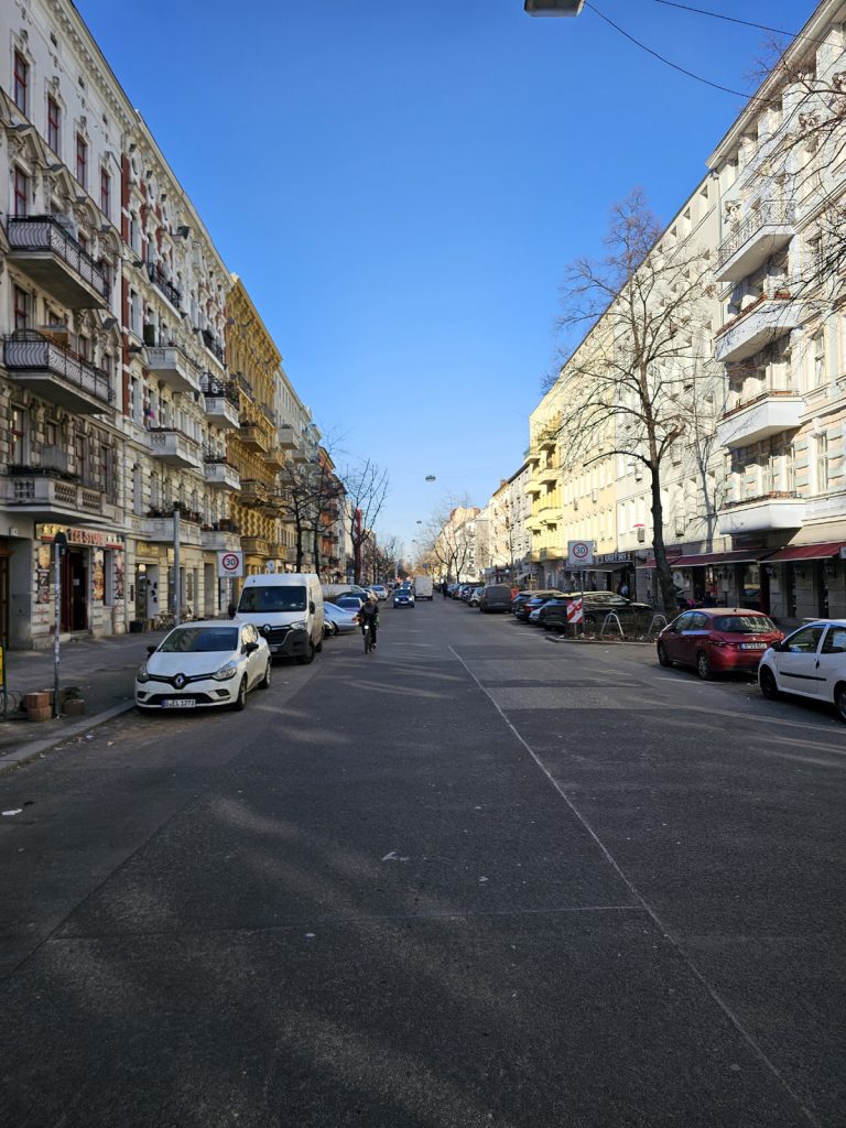 Nach dem Gym machten wir unseren ersten längeren Spaziergang des Jahres, von den Neuköllner Passagen bis zu mir nach Hause, das ist in der des Nähe Bergmannkiezes, Said biegt vorher ab, er wohnt nicht weit von mir, ebenfalls in Kreuzberg. Ein wunderschöner blauer Himmel begleitet uns, es fühlt sich toll an.