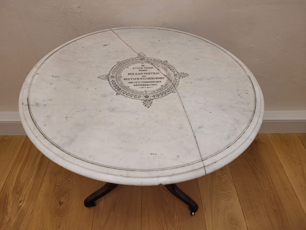 Dort angekommen, stießen wir nach wenigen Schritten auf das Schoelerschlösschen – mit einem kleinen Café, welches erst im Oktober 2024 eröffnete. Wir „stürmten“ förmlich hinein. 🤣 Die Betreiberin bot selbstgemachte Kuchen an, und ich entschied mich für den San-Sebastian-Kuchen. Er war unglaublich lecker. Anschließend schauten wir uns im Schoelerschlösschen um. Die alten Fensterrahmen, der besondere Charme des Gebäudes und ein Tisch, auf dem der Kaufvertrag von Deutsch-Wilmersdorf am 14. Februar 1870 unterzeichnet worden war.